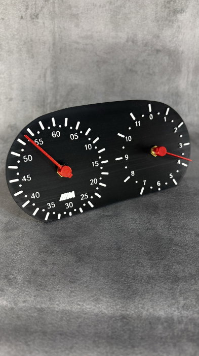 Ceasul de birou printat 3D, inspirat din designul instrumentarului auto, este un produs decorativ original, creat pentru pasionații de mașini, motorsport și accesorii cu personalitate. Modelul reproduce aspectul unui panou de bord și se remarcă printr-un detaliu special: este echipat cu două mecanisme separate.